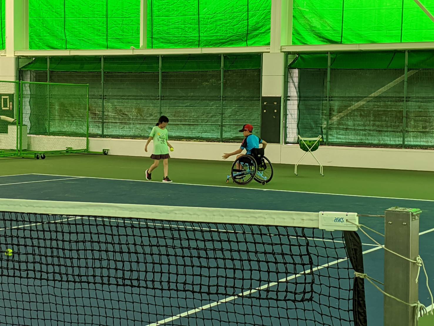 筑豊レインボー、待ちに待った練習再開の日です。もちろん、検温、消毒、ハグなし、ハイタッチなし等、きちんとコロナ感染防止対策を取っています。 残念ながら、大雨警報が数時間前まで出ていたので、市外の方は不参加。 それでもいいづかスポーツ・リゾート(旧筑豊ハイツ)のコートには賑やかな声が響きました。 隣で練習していた車いすテニスの先輩方にもご協力いただき、ありがとうございました♡