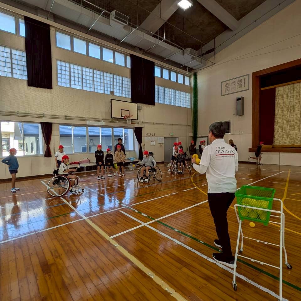 ちょうど一年前、ここ宮崎で車いすテニスコーチ講習会を開催し、沢山のご縁を頂き、今回の宮崎での出前授業が実現しました![]()